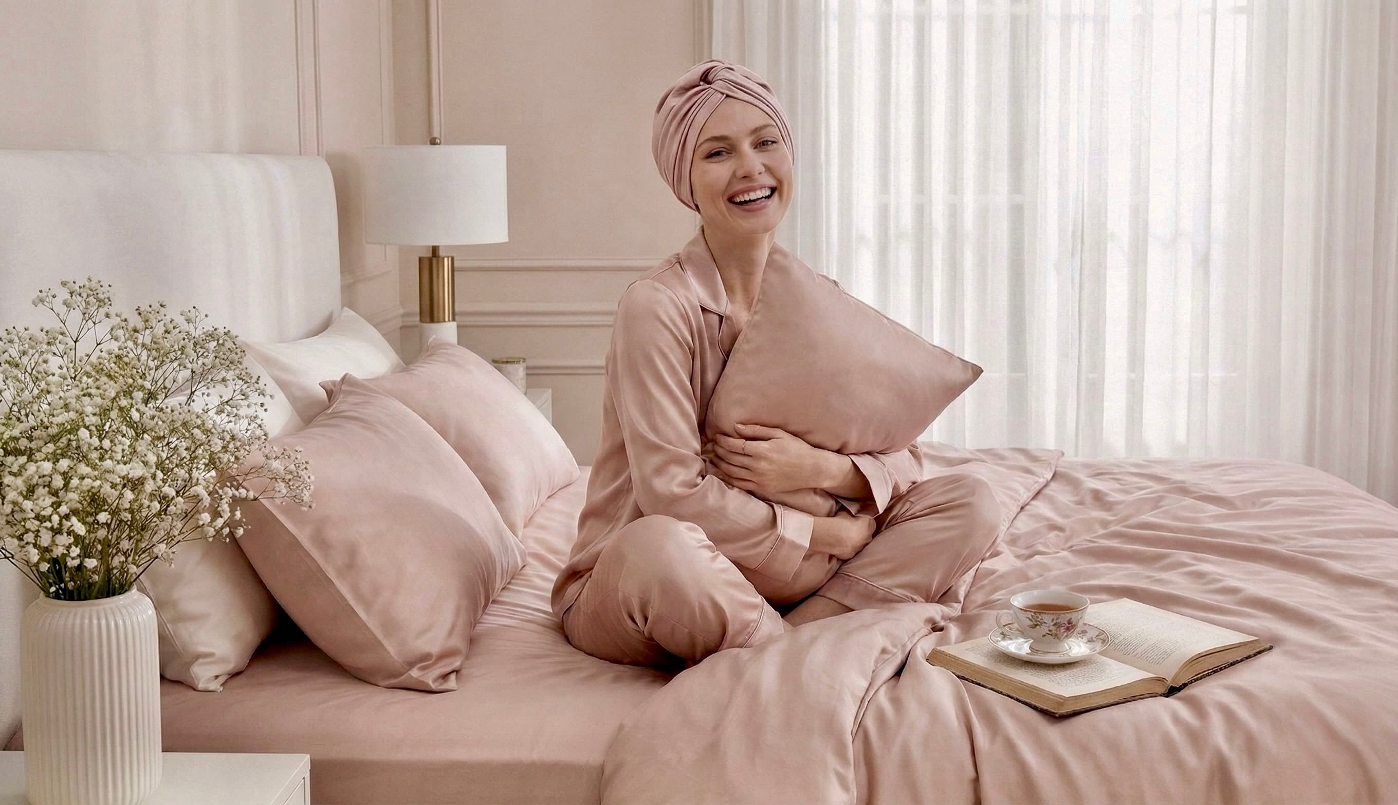 Bonnet en 100% Soie de Murier - Soin de Nuit Cheveux